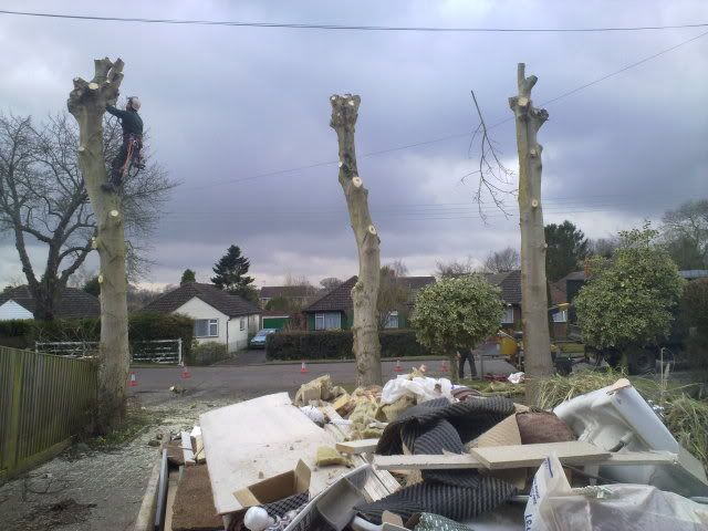 So I got a local tree surgeon to remove trunk, take out root plate and chip the brash for £300 .